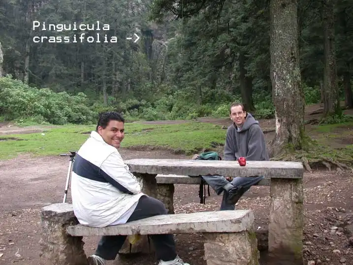 Ruben Resendiz and Fernando Rivadavia having a rest before reaching the Pinguicula crassifolia location behind. Photo : Ed Read Track this image in its original page : link