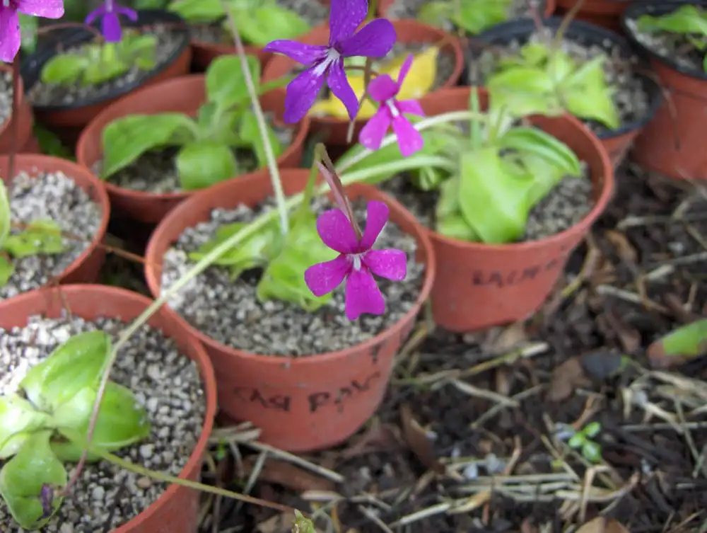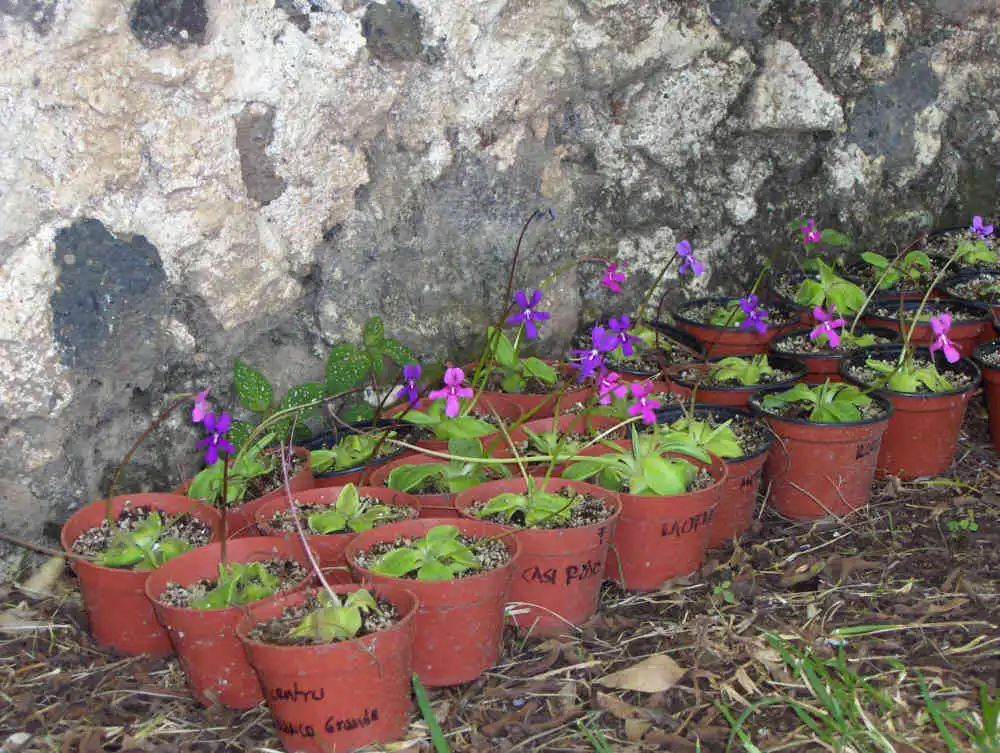 Pinguicula moranensis var. neovolcanica, pink and purple flowers population, from El Volcancillo.