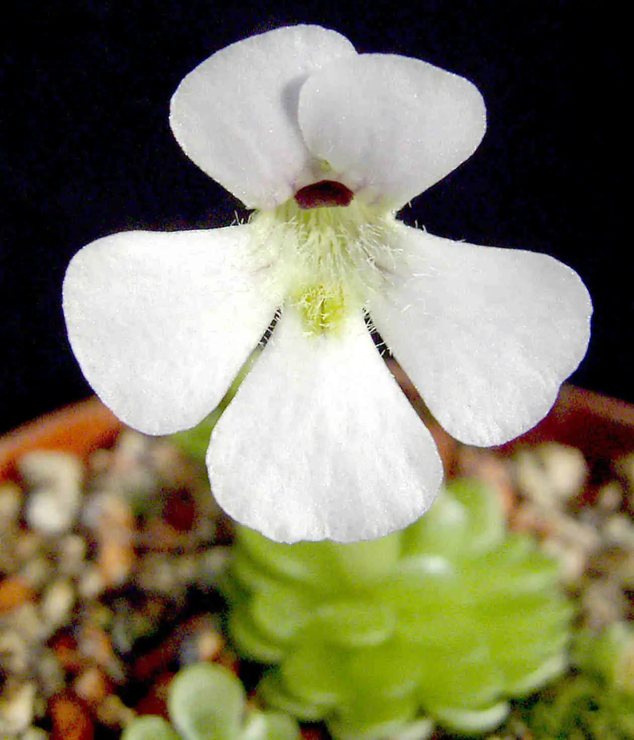 The flower of ‘1715’, a form of Pinguicula cyclosecta with pale flower. Photo : Travis Wyman