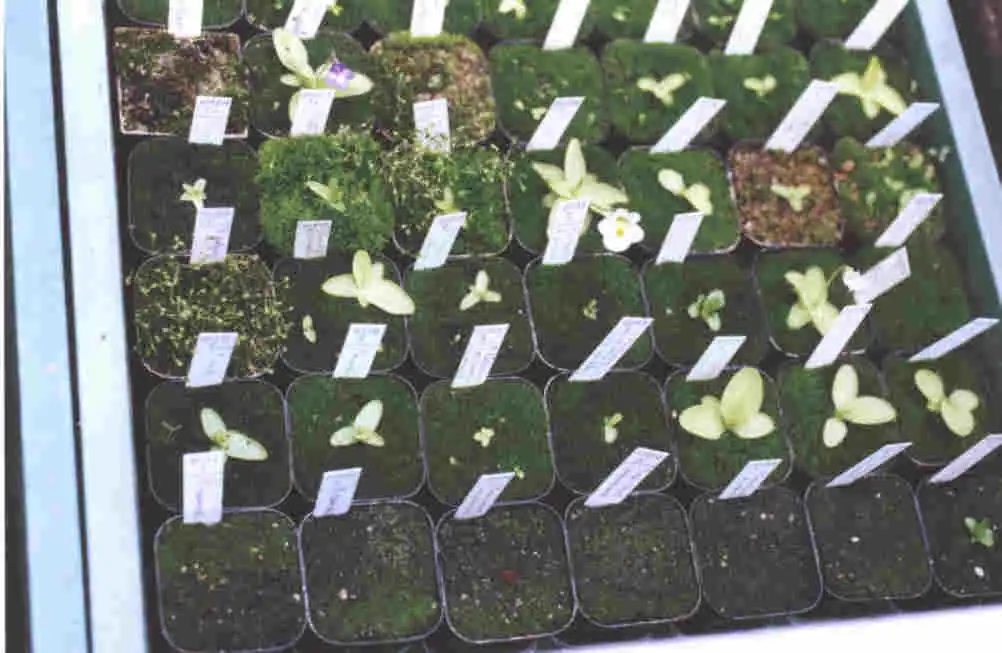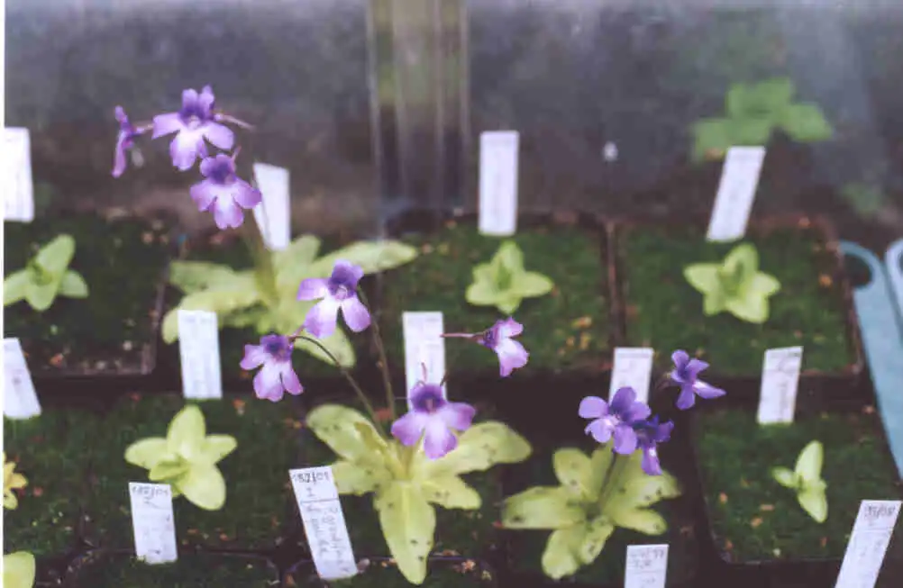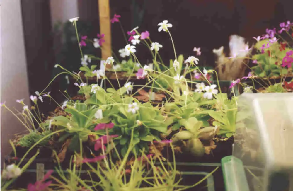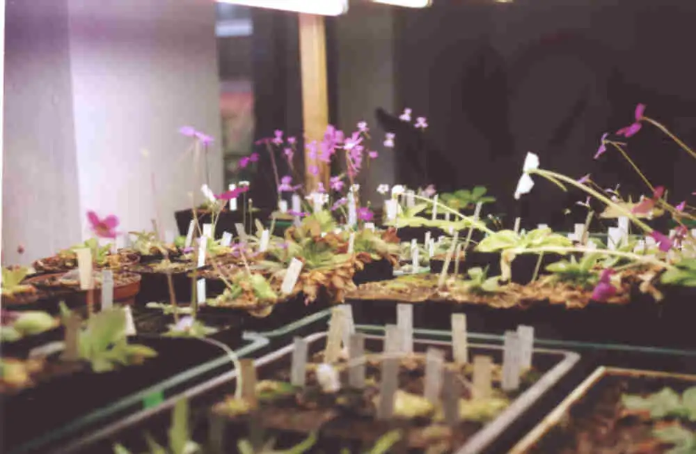 Even the hardest plants to grow are successfuly grown inside. Here for exemple, Pinguicula alpina. Photo : Eric Partrat - May 2002 - |
