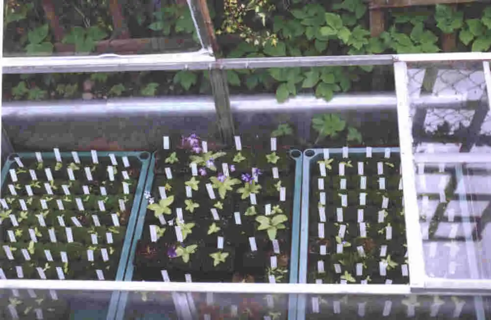 Oliver grows his temperate Pinguicula in a cold frame in his garden. The frame is protected with a cover during hot summer days to prevent excessive temperature inside the frame when the sun is shinning. Photo : Eric Partrat - May 2002 - |