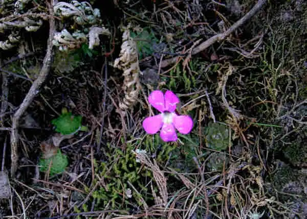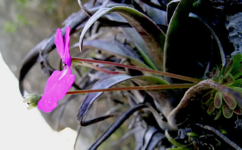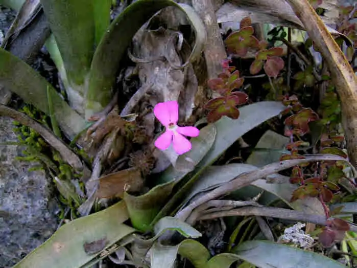 I continued exploring the cliffs, circling around columns of stone, pushing my way through the bushes. I clambered up on some rocks, trying to reach a higher part of the wall. And suddenly there it was, a Ping flower jutting out from the middle of a small island of bromeliads, cacti, and others. Then another nearby, higher up a few more. Sadly though, they were not blood-red in color, but a pink-lilac, similar to most Drosera flowers I’m used to seeing in Brazil.