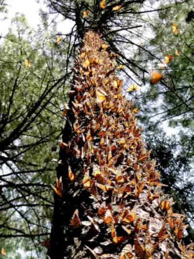Every winter, in pine forests of a few selected mountains, millions of migratory monarch butterflies (Danaus plexippus) arrive from all over N.America to hibernate in massive colonies, completely covering the trees. It’s something unique, that you can’t find anywhere else in the world, certainly an amazing sight and unforgettable experience.