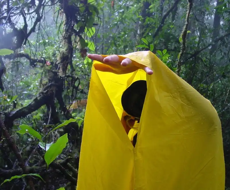 Before too long something that looked like a carro but wasn´t one did show up, and the friendly driver offered to give us a lift for a few kilometers. A while later he dropped us off at a roadside restaurant, thoroughly chilled but 10 km. closer to our goal: P. hemiepiphytica. Another friendly local chatted with us for a few minutes outside the restaurant before offering us a ride some more kilometers up the road. As we climbed in the back of his truck, we noticed that the other three occupants of the bed were much more well bundled up than we were. Haha. It´s kind of funny looking back at it now from this warm internet cafe. A few kilometers later it started drizzling. Both of us had planned ahead and brought ponchos (although mine looked and felt more like a plastic bag with holes in it). We wrapped up as best we could and grinned back at the Mexican lady laughing at us from the other side of the truck bed.