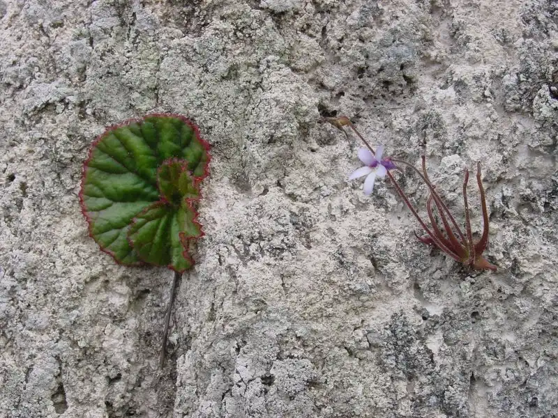 A begonia growing alongside P. heterophylla :