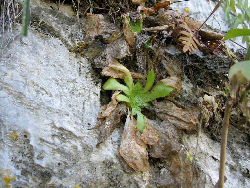 Pinguicula colimensis in habitat. Note the resting rosettes with old summer leaves. Photo : F.Rivadavia |