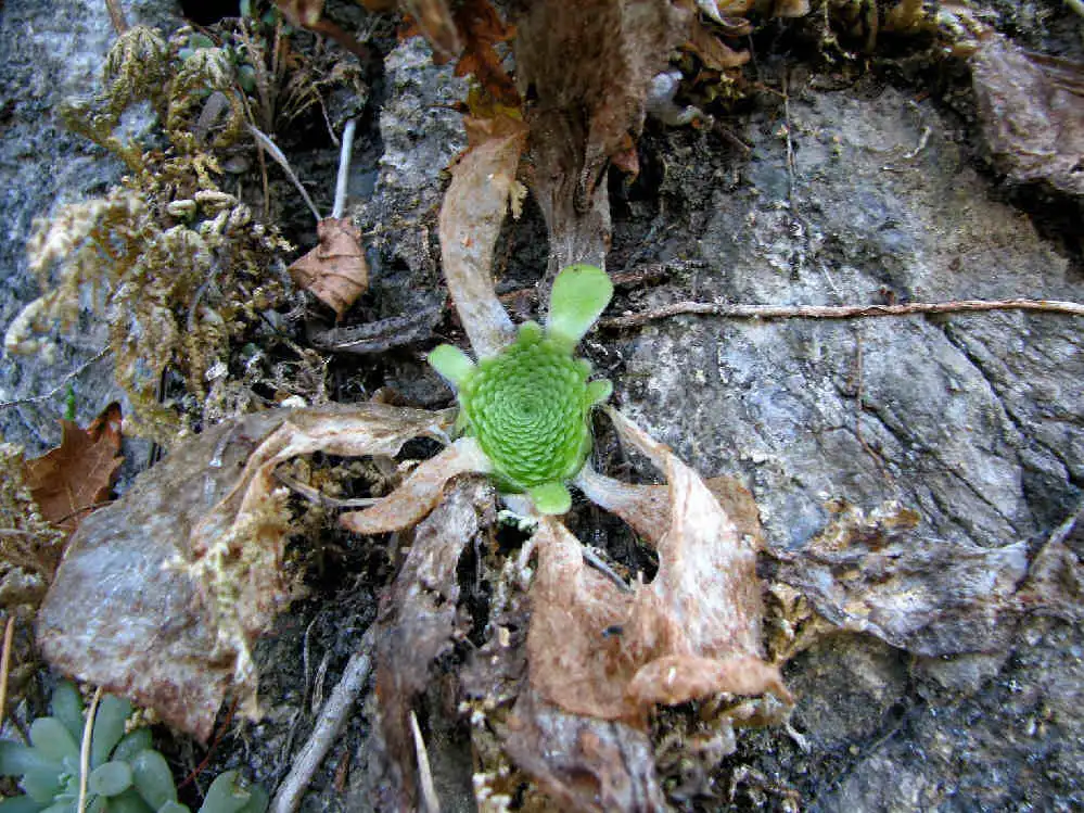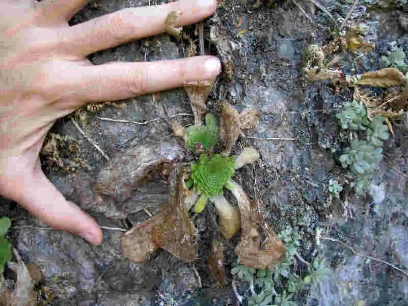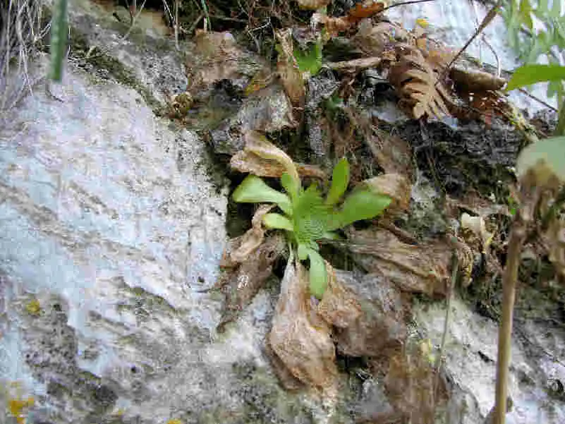 Pinguicula colimensis in habitat. A winter rosette composed of hundreds of small leaves. Photo : F.Rivadavia |