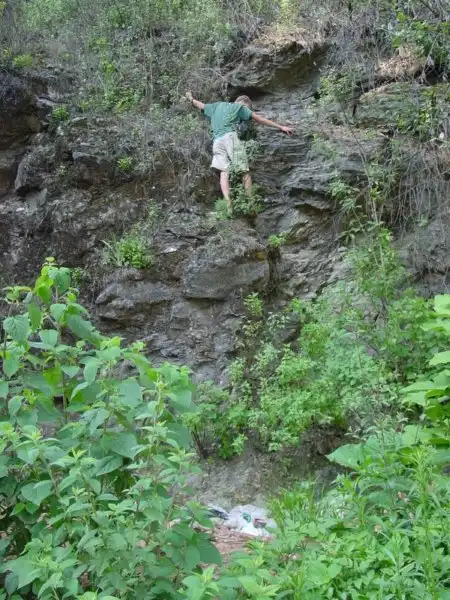 The cliff was composed of what looked like slate, mostly unstable.