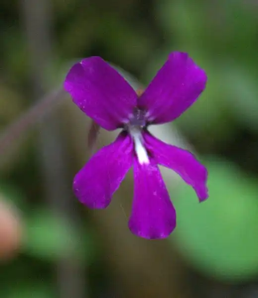 The next flowering plant I saw, perhaps a meter away, had this flower (a darker purple than came out in this picture):