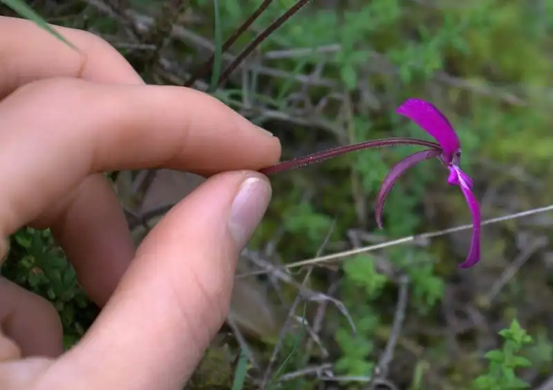 A comparison of the spurs is also interesting. The spur of the second plant was narrow, long, and relatively straight :
