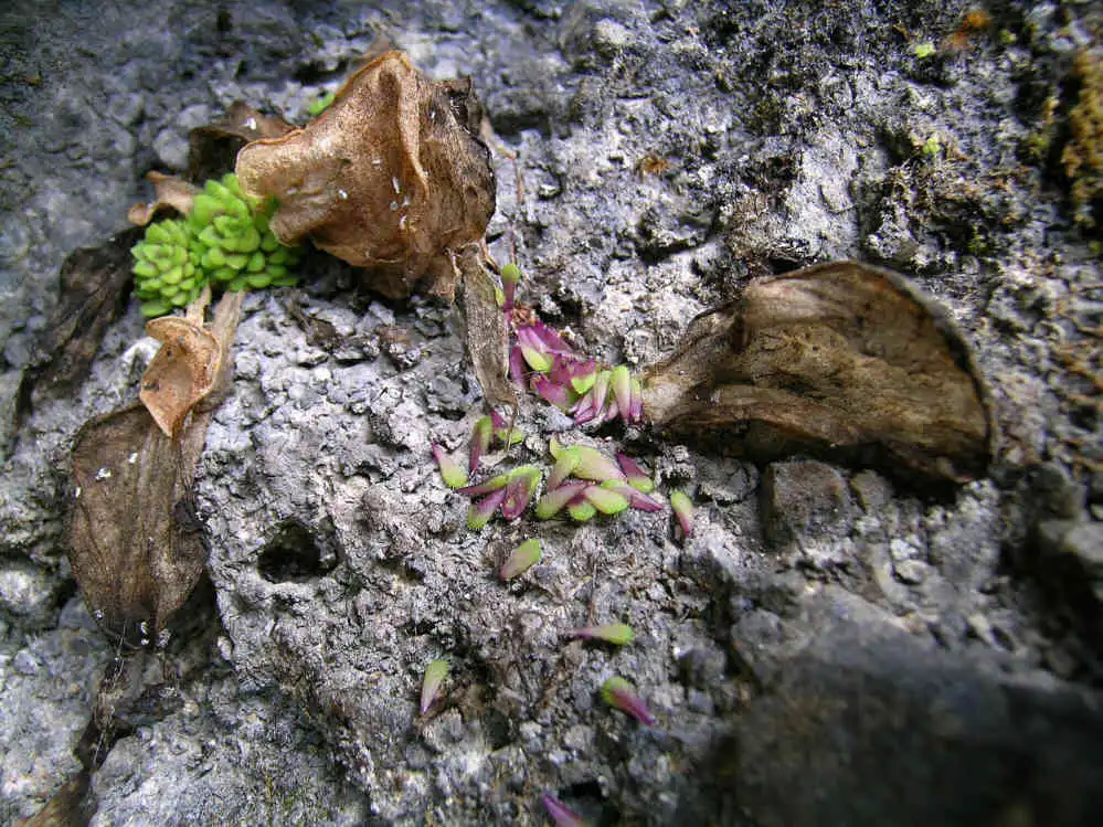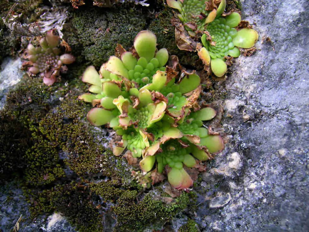 Exploring the area a bit better, now knowing what I had to look for, I finally saw the plants growing almost by the roadside which I’d somehow managed to miss twice already, once with Ed. Again there was a large number of plants, fortunately most of them out of reach. On a shadier mossy patch I did find a few summer leaves still alive, although not looking great. Here I realized P.conzattii did not grow on open cliffs exposed to sunlight. Although facing W and S, strangely enough, they only grew on vertical rocks semi-shaded by trees and bushes.