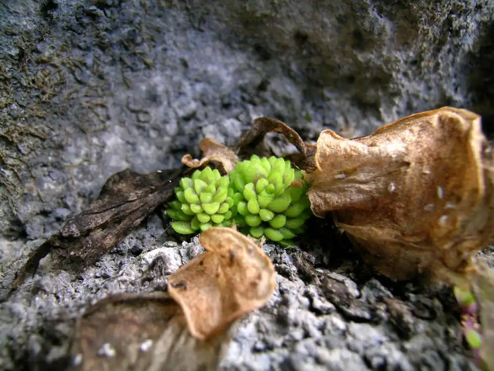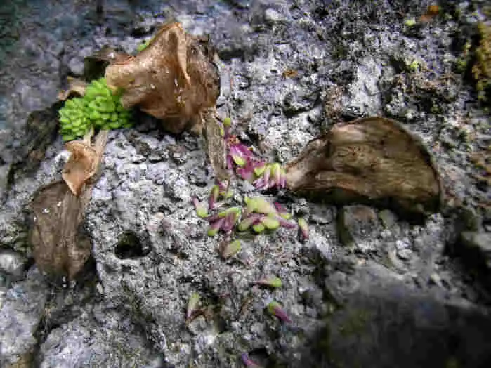 Winter rosettes of P.conzattii, small winter leaves with dried summer leaves. Photo : F. Rivadavia - December 2003 - |