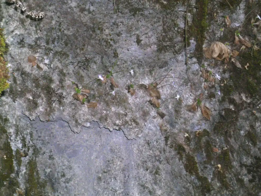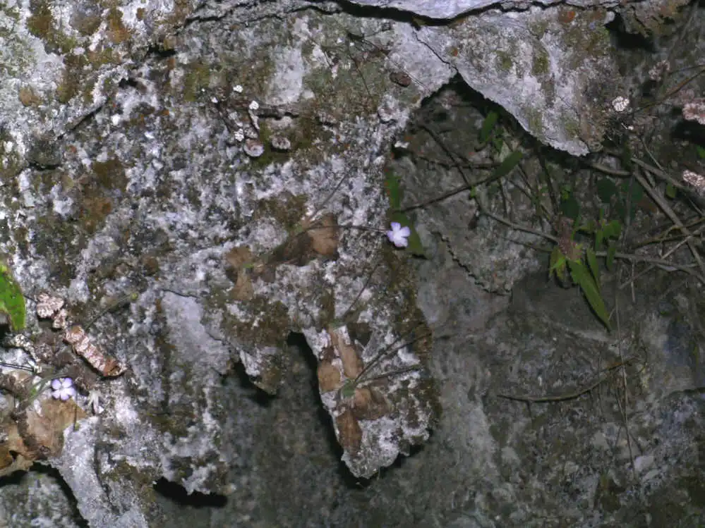 Disctractedly walking through the forest, I looked at a rock face ~20m to my right, which was when I finally spotted some white flowers. I swear I almost walked on, thinking they were too big to belong to P.conzattii. But, just in case, I thought I’d better try crossing the thicket to the base of the wall to check all those flowers. WOW! It was truly P.conzattii !! I couldn’t believe how many plants and flowers there were. The calcareous rock was completely dry, yet the layer of dead mosses told a different stiry from another season.