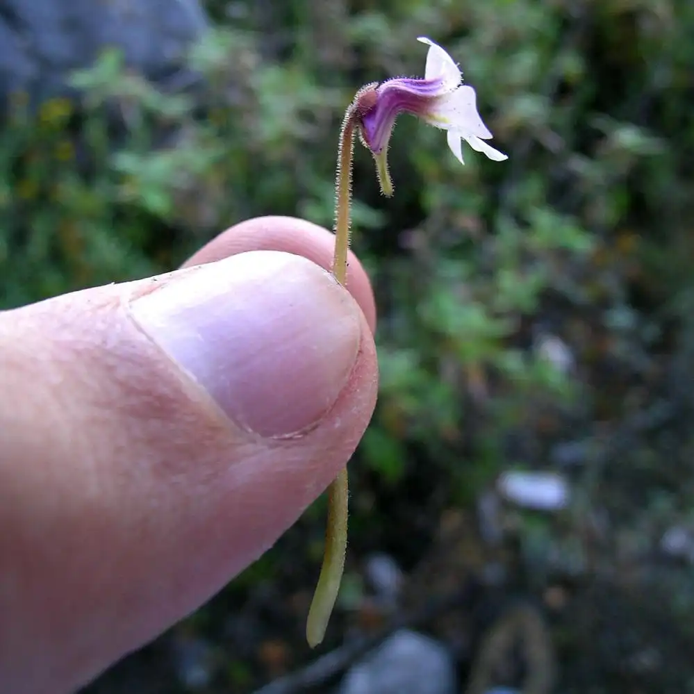 Close-up of a flower of P.conzattii in habitat showing the impressive coloration of the lobes. Photo : F. Rivadavia - December 2003 - |