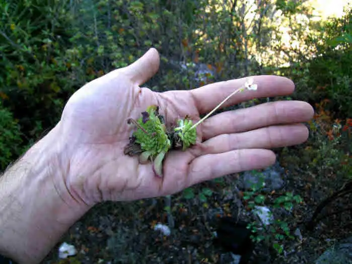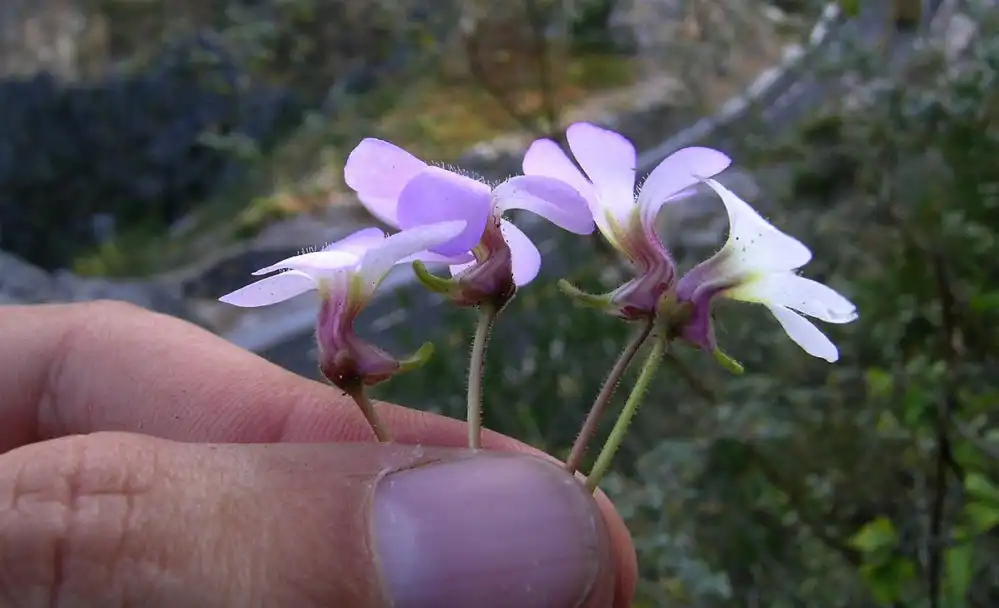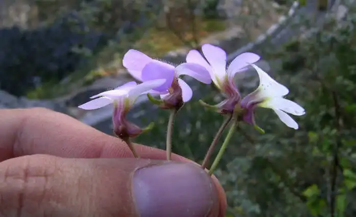 P.mirandae flowering from the winter rosette Photo : F. Rivadavia - December 2003 - |