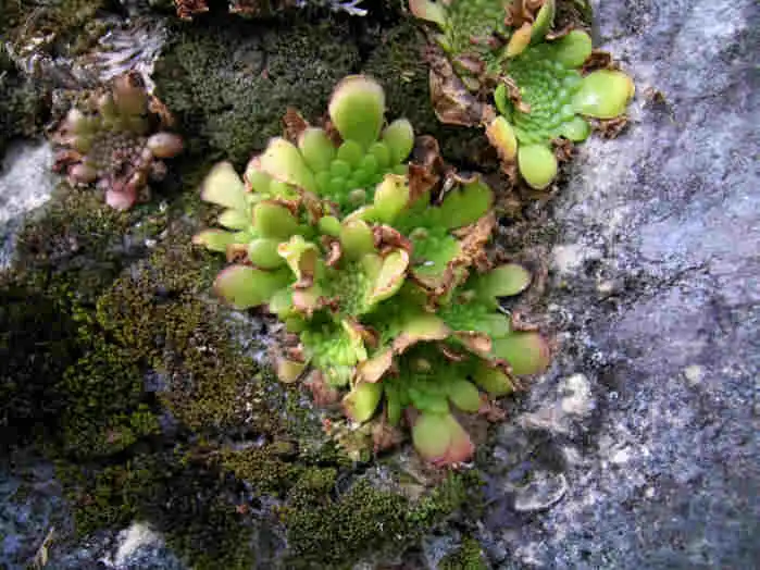 Cluster of winter rosettes of P.mirandae. Photo : F. Rivadavia - December 2003 - |