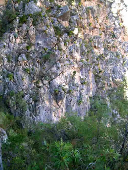 A wall facing North, the habitat of P.mirandae. Photo : F. Rivadavia - December 2003 - |