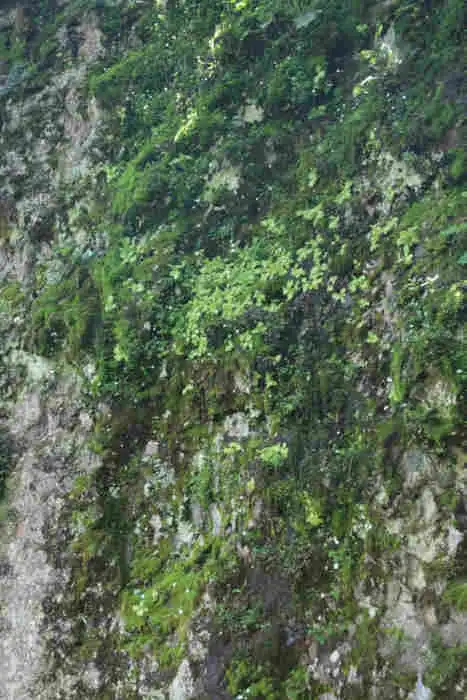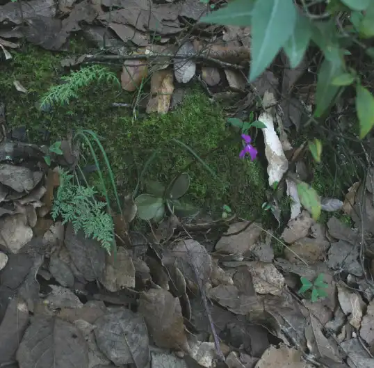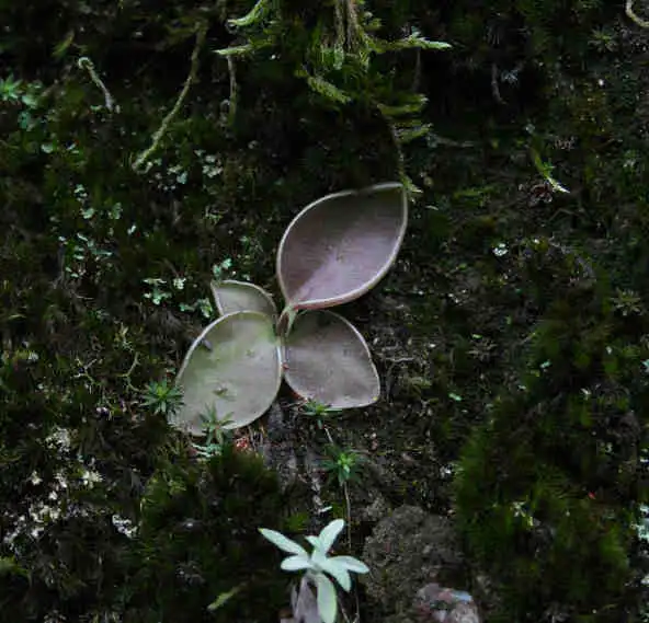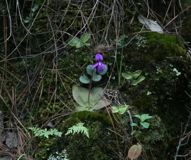 P. acuminata in habitat. The whole rock (densely covered with moss) and also places in the forest were covered with thousands of P. acuminata plants. Photo : O. Gluch - July 2008 - |
