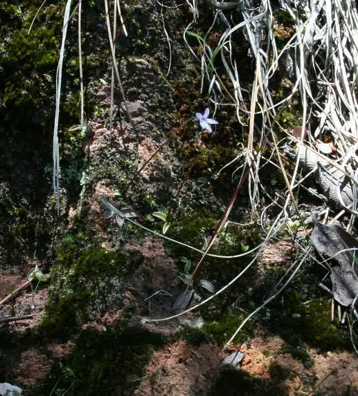 The flower seems to appear out of “nothing”, as the winter rosette is buried in the moss or substrate. The rock on which the plants were growing seemed to be of volcanic origin (for sure it was not calcareous), but I will have to do more geological investigation to confirm my assumption. Photo : O. Gluch - July 2008 - |