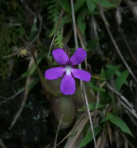 There were a lot of new highways we could take, therefore we were faster than expected. After Acaxochitlan we turned south and continued on highway 119 to Zacatlan. From there we were voting again for the “shortcut” towards Teziutlan, also to explore a little more the mountain area in Puebla. But what a road! Small, winding up and down, no chance to pass any car or bus, and millions of “topes”, we continued our way like a turtle. The landscape was pretty, eventhough it was raining a lot during the way, but we passed quite some nice canyons, where there must have been some Pings growing. After the village of Ahuacatlán towards Tepango on Puebla State road 108, we found a very nice population of P. moranensis at about 1400 m altitude. Colouration of the flowers were ranging from dark violet to magenta, not very spectacular, but a nice population. There were also different terrestral orchids around, one species even flowering with nice small cream-coloured flowers. It was getting dark already, when we passed by the village of Zacapoaxtla, a site were also P. emarginata was found, before we finally arrived in Teziutlan, where we stayed the night.
