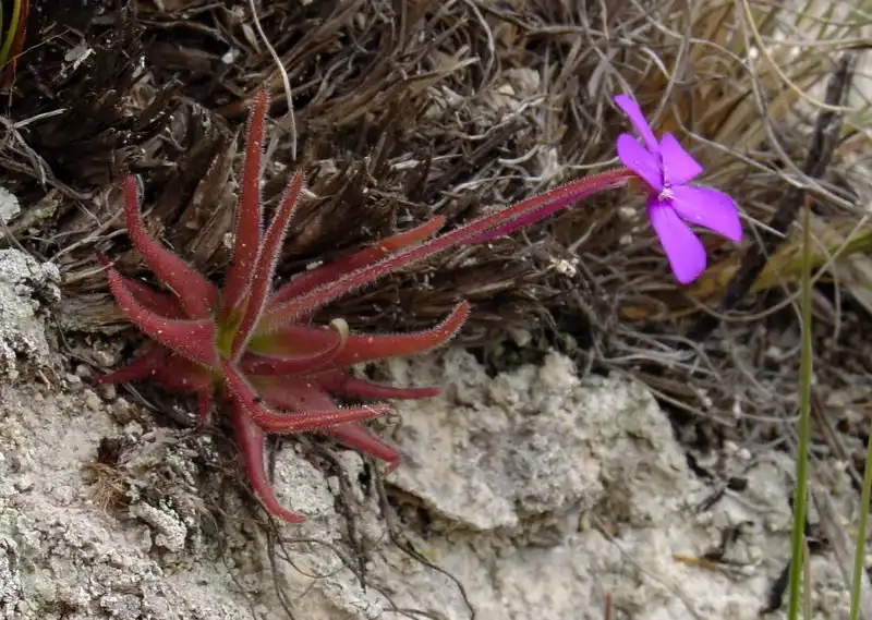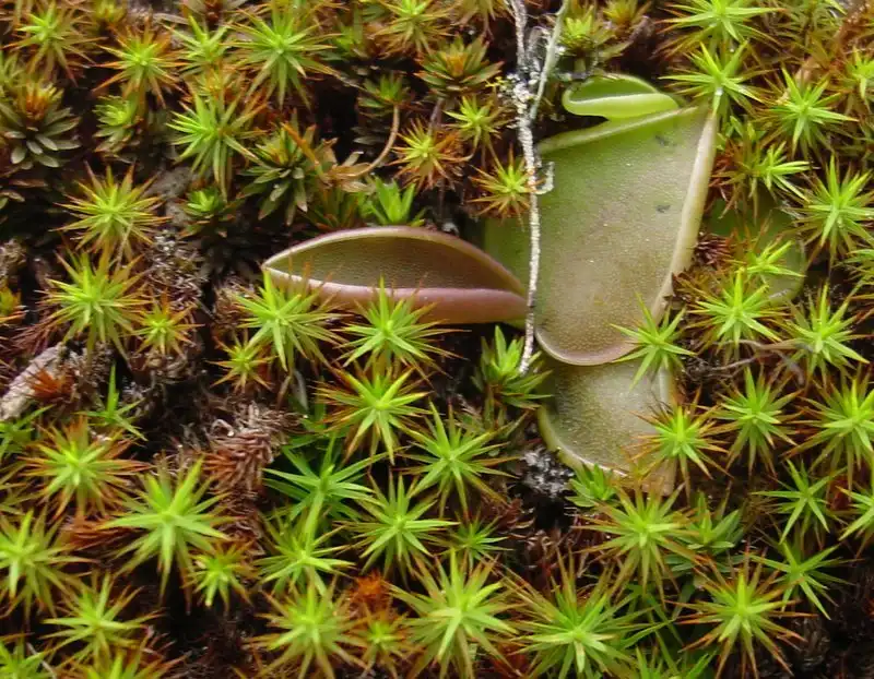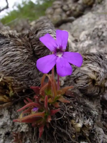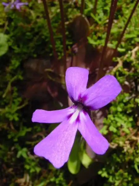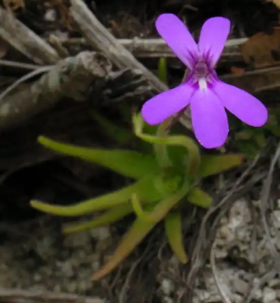 Since the species description for P. laxifolia totally lacks a description of habitat, we concentrated on sunnier areas based on the premise that the narrower leaves of this species might be an adaptation to high light levels. Unfortunately, try as we might, we were unable to find a single specimen of P. laxifolia anywhere. The only Pinguicula to be found were the ever-present P. moranensis and P. esseriana. Both of these, however, are worth noting: