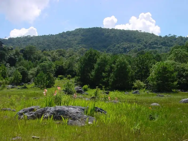 Come morning we left around 9:30, following a large breakfast made to order by a local housewife. This time, as Forbes was experiencing knee problems, we decided to leave all of the nonessentials behind, taking only cameras, notebooks, and our remaining food. The local who had given us directions told us that Agua Linda was about 5 hours walk up the mountain, and that La Perra was another hour or two beyond that. I guess I was expecting these to be pueblas, but instead Agua Linda turned out to be a spring, whereas La Perra is.. well… we’re still not really sure what it is. From what I gathered from the local, woodcutters go there several times a year to cut wood. Not exactly a good landmark description. By midafternoon we found Agua Linda, at just over 6400 ft. From here we started scouring the trail-sides and any piece of suitable habitat we could find. The habitat here was more variable than any other we had seen in the whole of Mexico, with a forest of varying density interspersed with meadows, cliffs, earth banks, and rocky hilltops.