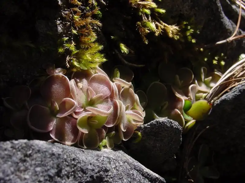 Some Mexican youth we had met in the area (they were hiking the mountain as tourists) wanted their picture taken with a Pinguicula when they heard what it was we were doing. |