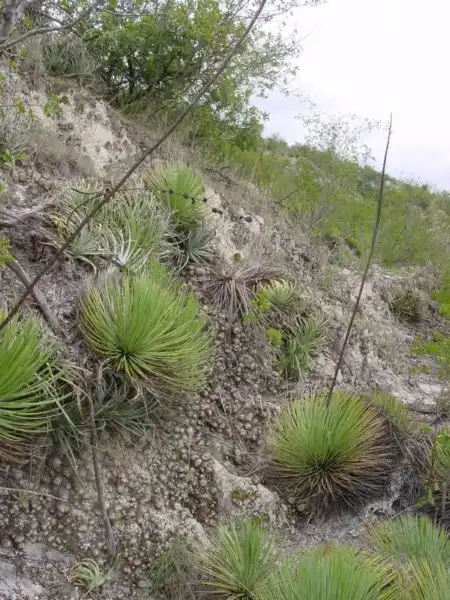 P. gypsicola grows in the state of San Luis Potosi, on a gypsum hill in a barren desert near a town called Buenavista that was not on our map.