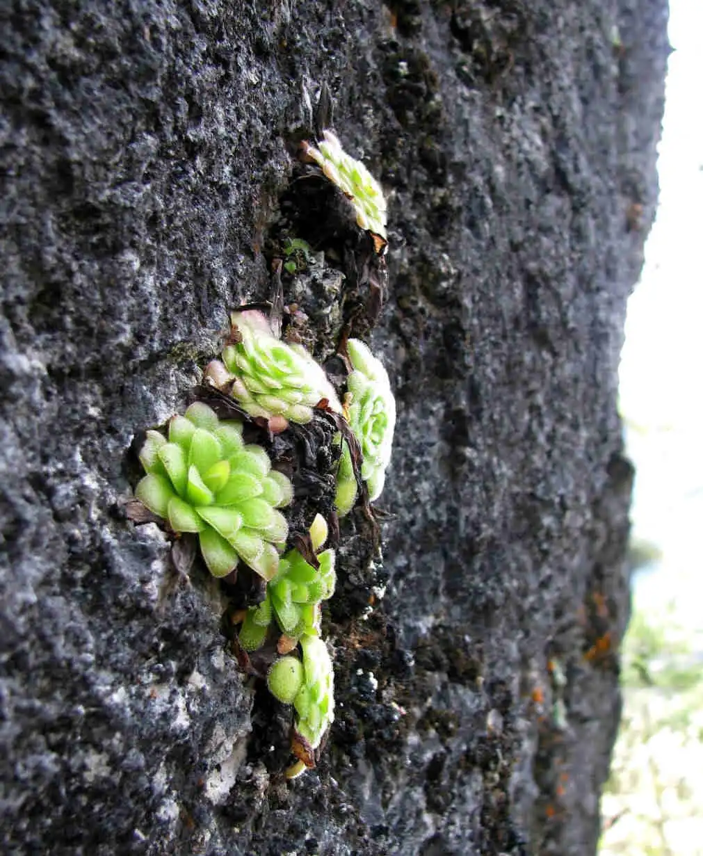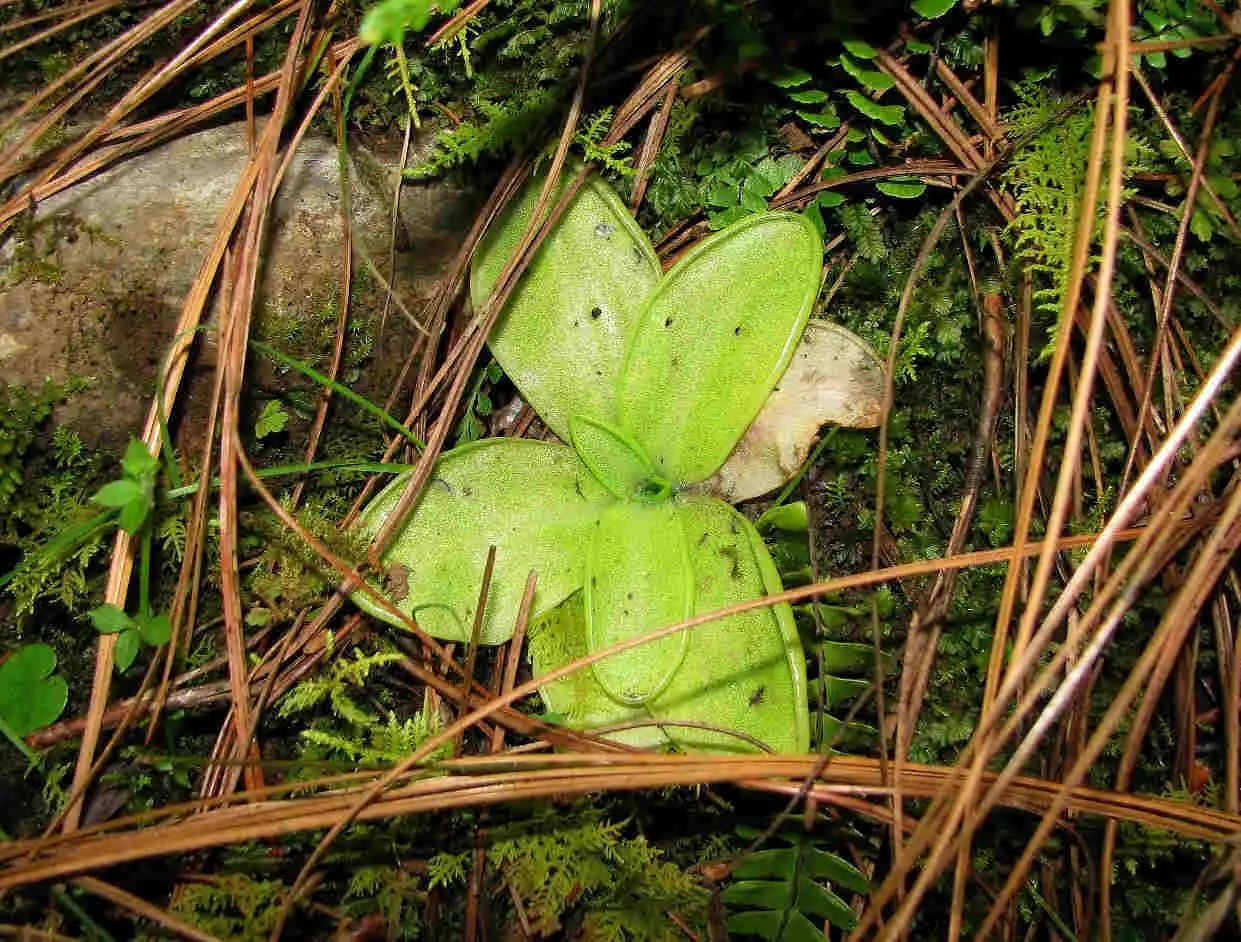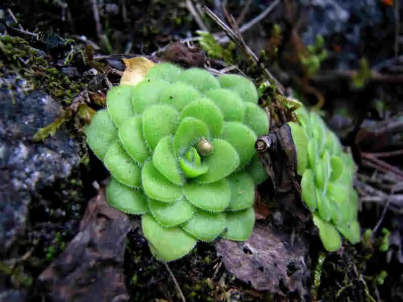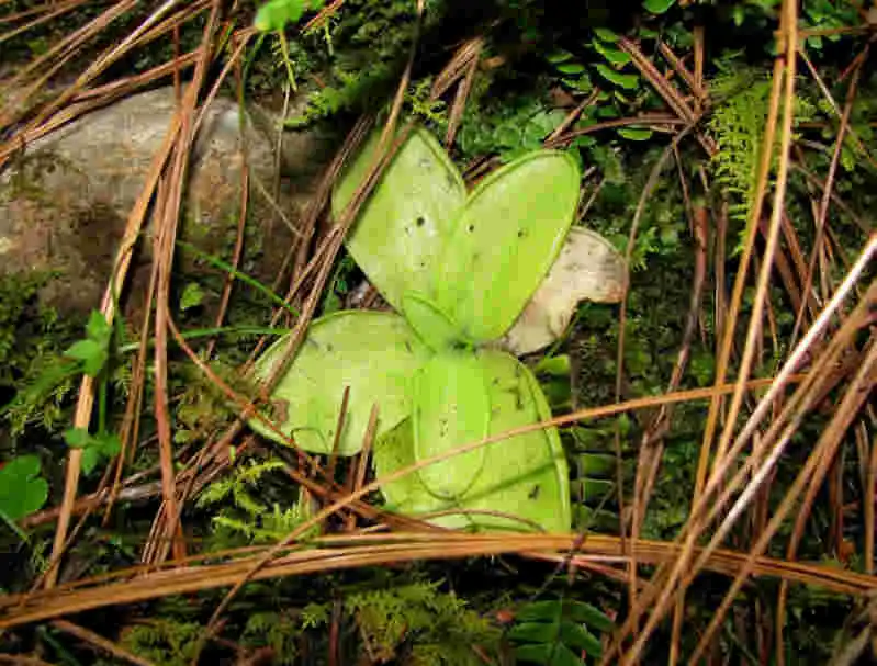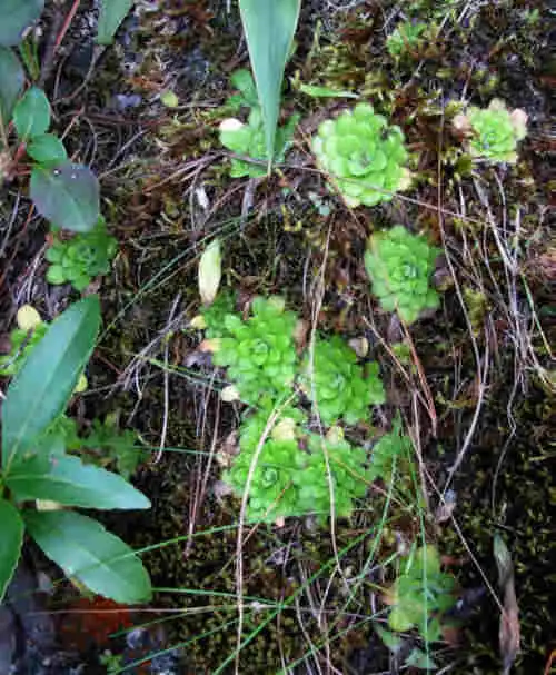 Pinguicula moranensis growing on tree base in Sierra Gorda. Photo : F.Rivadavia |