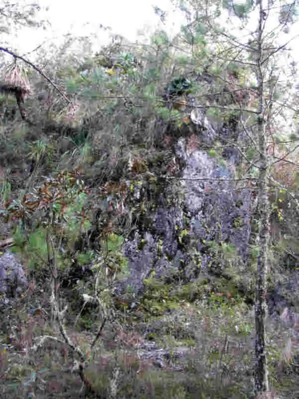 P. martinezii site on rocky outcrop. Photo : F.Rivadavia |