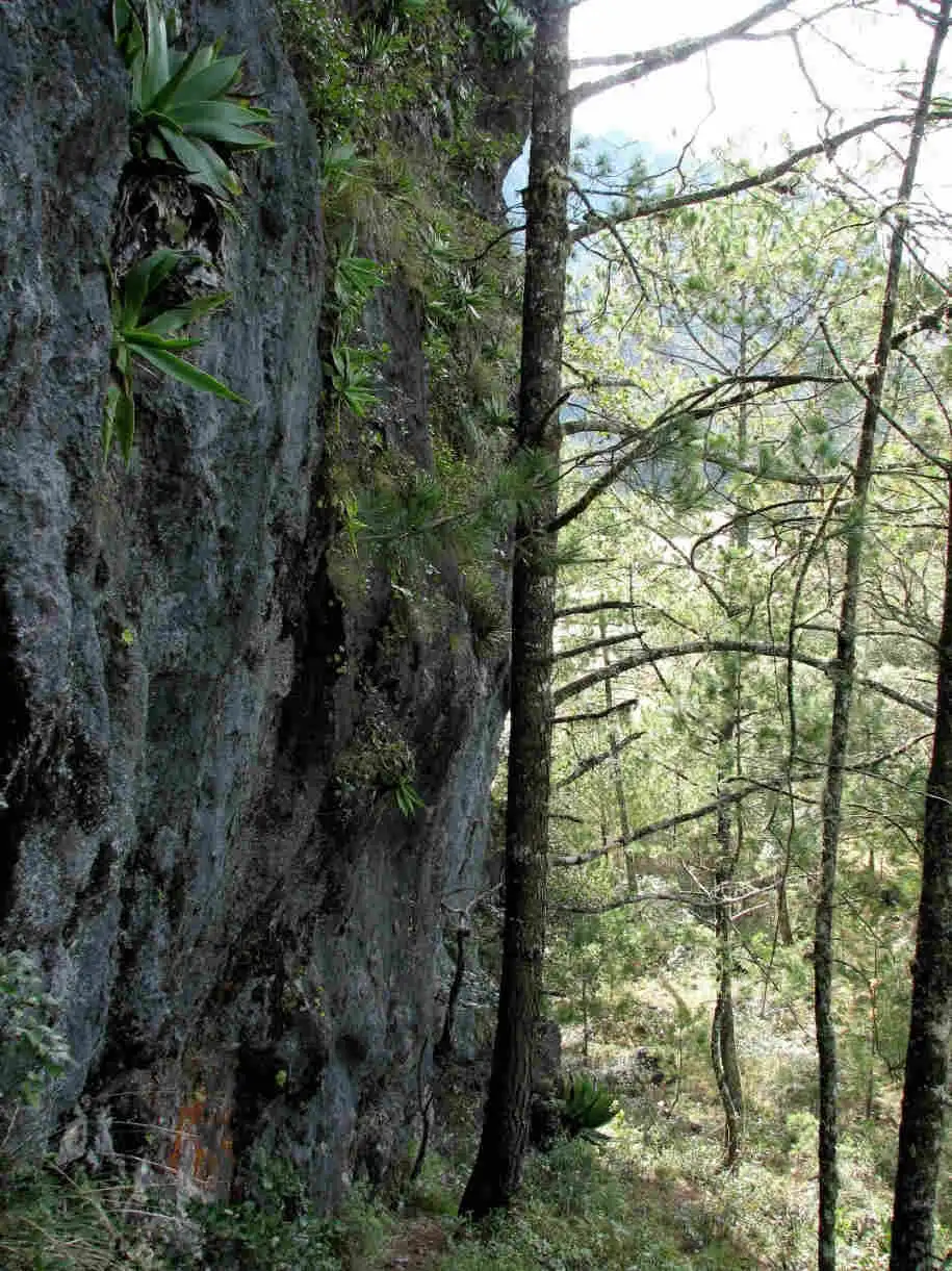 I had only a few hours to explore the top of the Sierra Gorda before it got dark. But it was enough to find both known locations of P.martinezii, as well as a few other sites. All were relatively well exposed north-facing cliffs, often with P.moranensis growing around the shadier corners. I couldn’t find any hybrids between the two species however. I hiked up to around 2400m altitude along a path that led to the other side of the mountains, where both P.martinezii and P.calderoniae had also been collected.