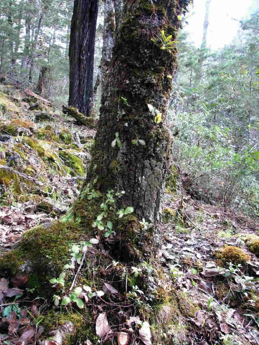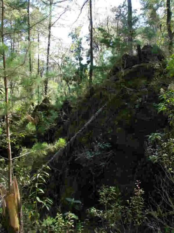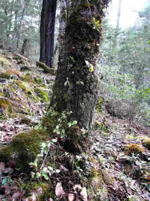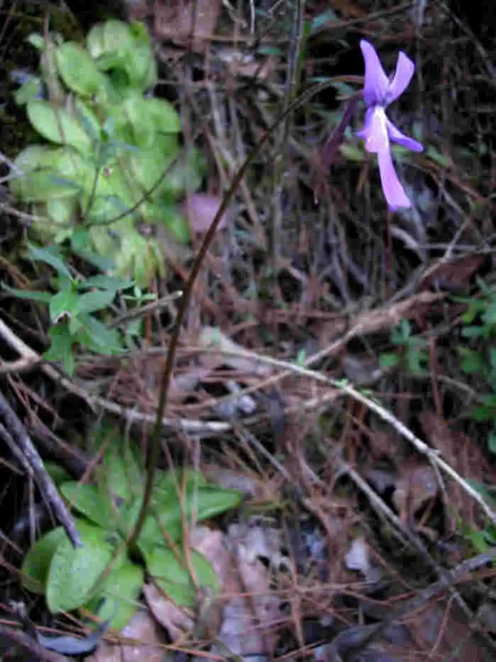 Luck was definitely with me that day and my first option quickly led me straight up the mountains. I saw P.moranensis at several spots along the way, growing on rocky outcrops semi-shaded by pine and oak forests and even growing along the trail itself. They were mostly flowerless rosettes (summer and winter rosettes), but I did find a few large purple flowers at one site. I even found some plants growing on the base of a tree! I even bothered to take a picture of a nice orchid growing on top of this tree – I only looked up there in hopes of finding more Pings, I swear !