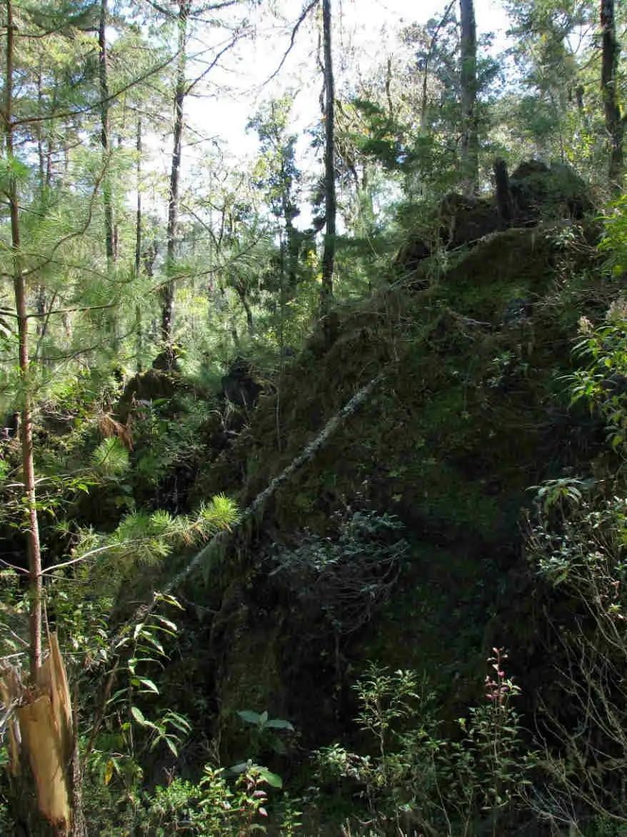 Once I reached around 2200m in altitude, the first north-facing rocky outcrop I hiked past turned out to be covered with P.martinezii!! They were growing on mossy vertical surfaces which probably dripped with water during the summer. Although shaded by pine forests, only the more exposed (although always north-facing) parts of the rocky outcrop seemed to support P.martinezii. The shadier corners were inhabited by P.moranensis, in some cases growing alongside P.martinezii.