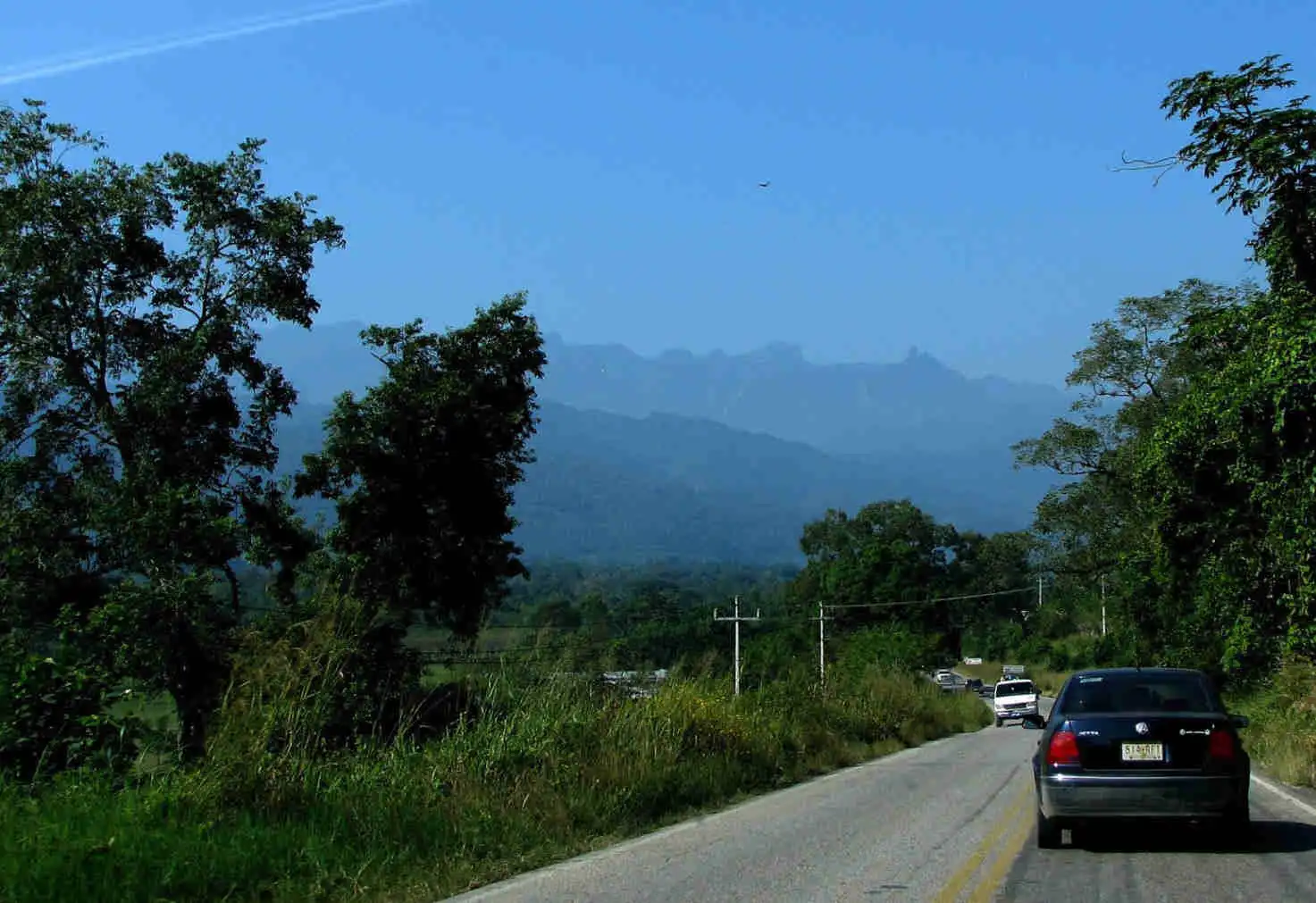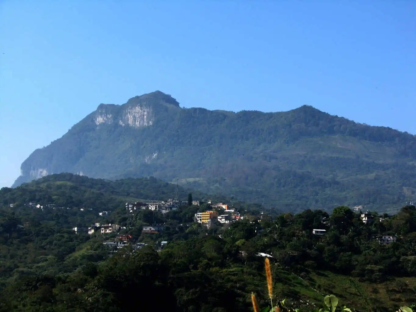 Because of all the endless curves and trucks on that single-lane highway, it took me quite a while longer than I’d foreseen and I only arrived in Xilitla around noon. It was a beautiful cloudless day and I had a fantastic view of the Sierra Gorda from below, rising above Xilitla. I had never really seen these mountains before, although I’d been there before on two occasions in the past – both times it had been too rainy and foggy to see them.