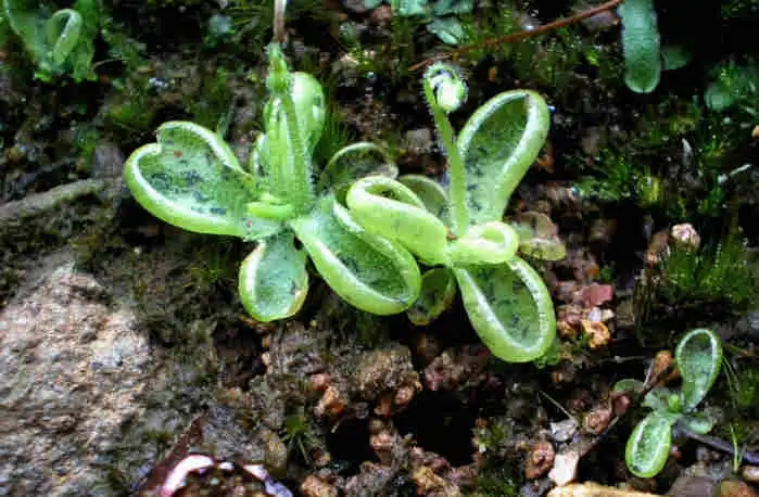 Young flower scapes on these tiny P. crenatiloba rosettes. Photo : F. Rivadavia |
