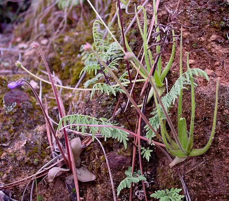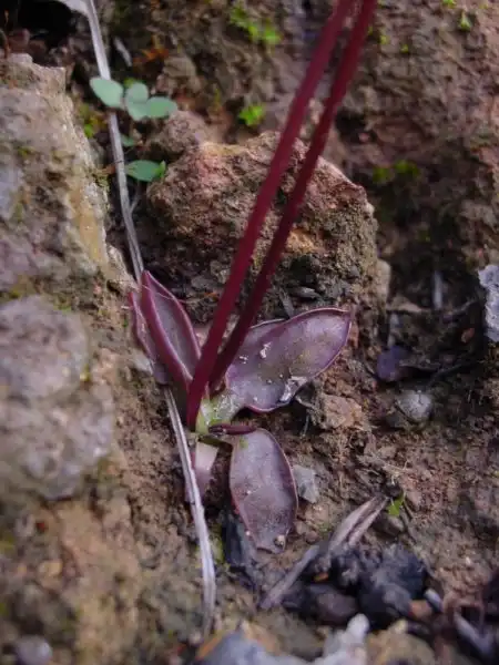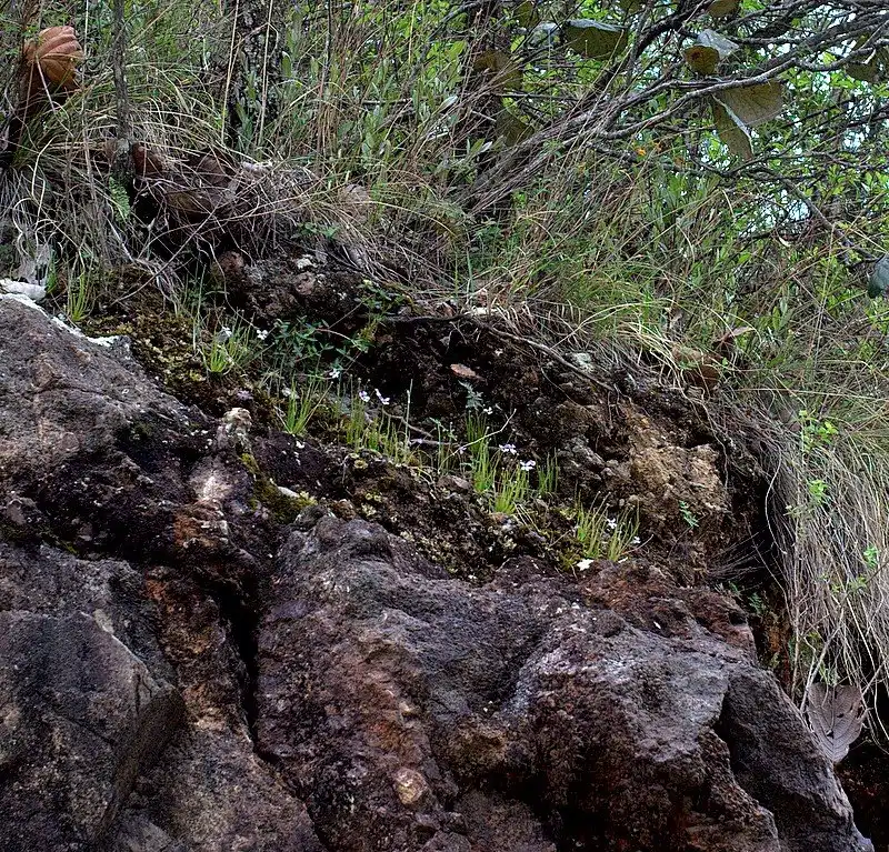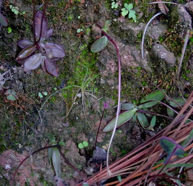 Above the cliffs the terrain was composed of a lumpy hillside with many clay and granite banks lightly forested with pines and oaks. These large-leaved oaks and at least three other species we recognized as having noted at the previous P. parvifolia site in Mexico state. The west-facing hillside supported nice populations of both P. heterophylla and P. parvifolia - the former growing on granite mounds and the latter on clay banks.