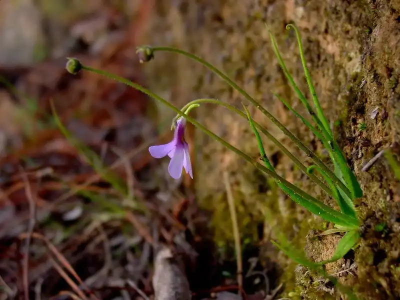 Near of the town is a location that houses three species of Pinguicula: P. moranensis, P. parvifolia, and P. heterophylla (as well as U. livida, which we were sadly unable to find on this trip). The first species we came across was P. moranensis, which seems to be a bit of a roadside weed within its habitat. These plants were inaccessable high on the cliffside, but appeared to have beautifully dark violet-purple flowers. Nearby, P. heterophylla could easily be spotted because of its unique upright growth.