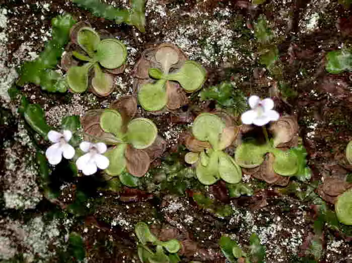 I had also observed this with P.emarginata, P.immaculata, and P.nivalis. Not surprisingly, all these species belong to subgenus Temnoceras section Temnoceras. And here is where it gets really freaky: P.clivorum was amazingly similar to P.gracilis, another member of this same section! Although I only know the latter species from pictures, the overall aspect of P.clivorum simply reeked of P.gracilis: the flower shape, the numerous hairs and green patch on the lower corolla lobes, the rounded leaves with distinct petioles. It is clear they’re very closely related species, separated by a little over a thousand kilometers. In fact the flowers of P.nivalis are also similar in shape to those of P.clivorum and P.gracilis, although the rest of the plant is nearly identical to P.immaculata.