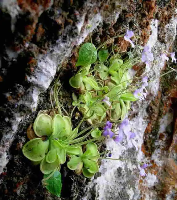 You can observed on P.clivorum that the flower scapes are initially sticking straight out and after pollination bend backwards towards the rocks in order to drop the seeds on the wall and not on the ground below. Photo : F. Rivadavia |