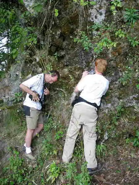 Fernando and Ed. at work in front of P. clivorum. Photo : Joe Mullins |