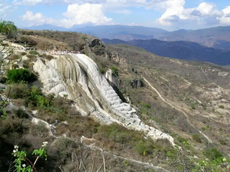 Hierve el Agua Hierve el Agua means "the water boils". Water rich in minerals bubble up from the mountains and pour over the edge. The result is spectacular with huge "frozen" waterfalls of minerals and turquoise pools. Photo : F. Rivadavia |