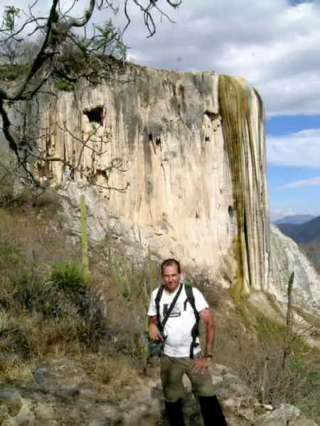 Hierve el Agua with Fernando posing. Photo : F. Rivadavia |