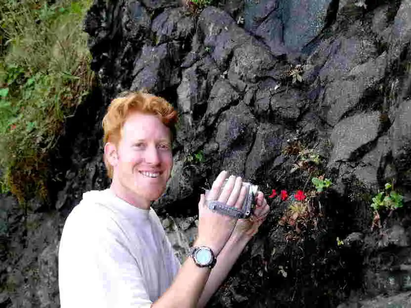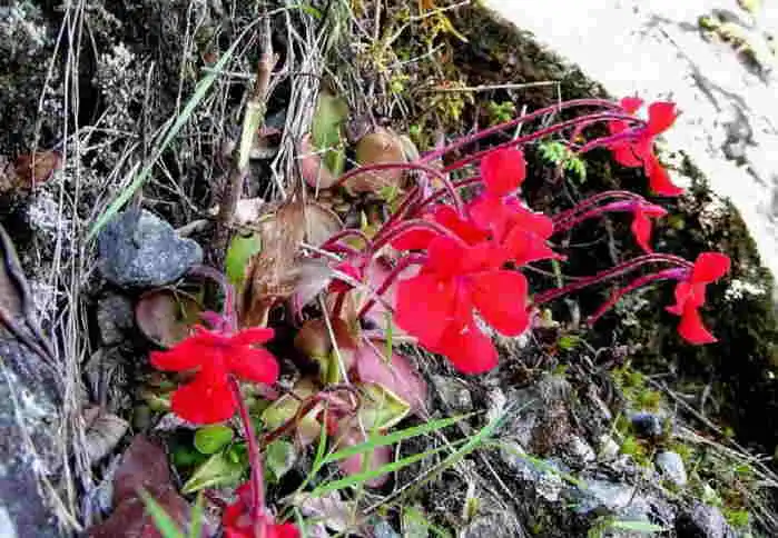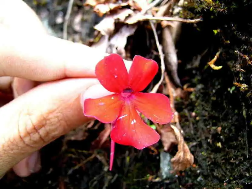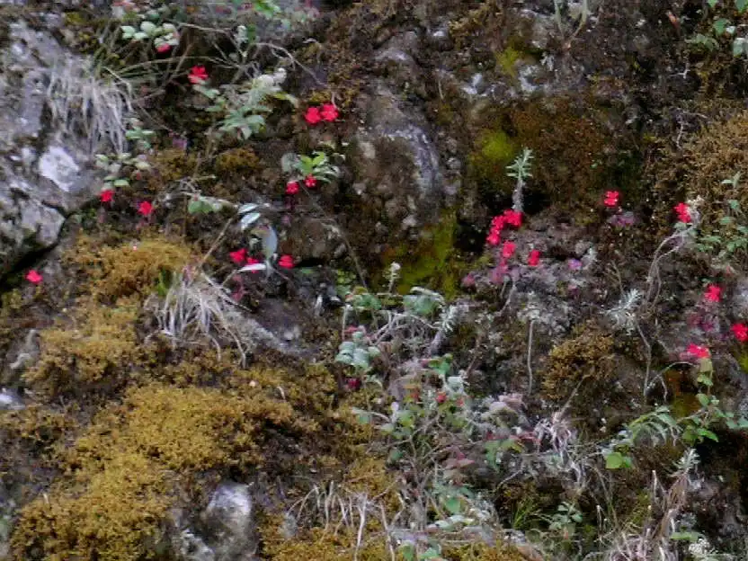 While discussing if we should climb the mountain or not, Ed crossed the road and checked the dramatic drop in the hillside. Scanning the steep precipice, he spotted more red flowers, within reach too! Well, that was a matter of opinion – or madness! They were only a bit further down from the road, but in a precarious spot at the edge of the drop. Knowing me well, at first Ed didn’t want to show them to me. When I saw them, I knew I had to go. Risking my life, I climbed down carefully, trembling with fear I admit! But the pictures were worth it!! JJ