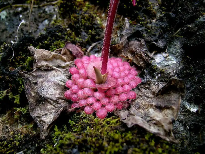 Close-up of a nice red coloured winter rosette of P. laueana Photo : F. Rivadavia |