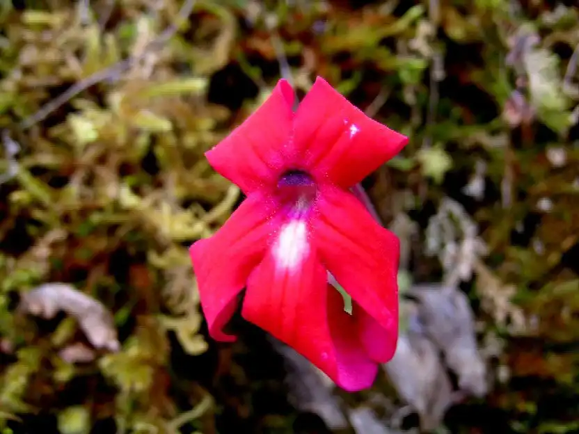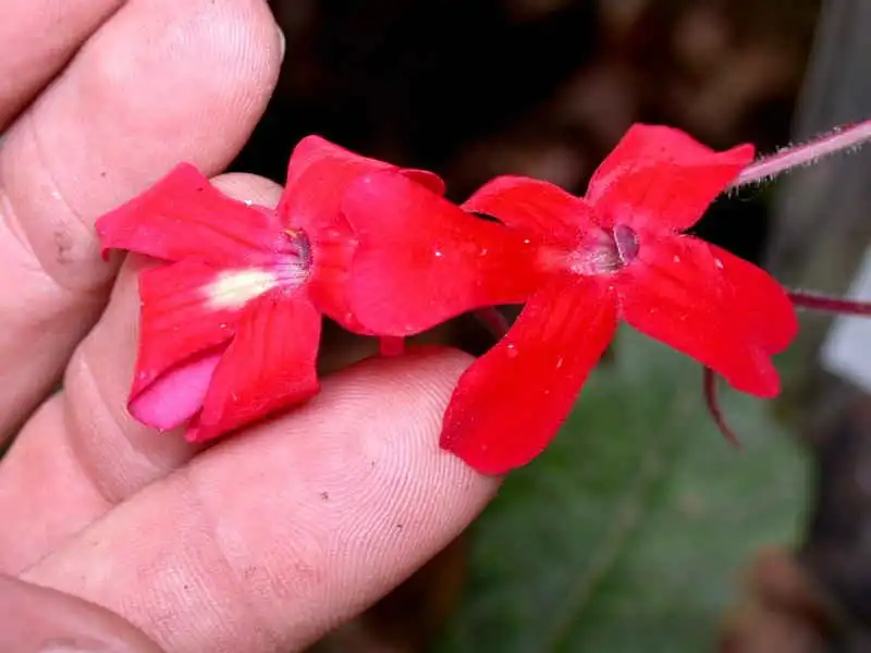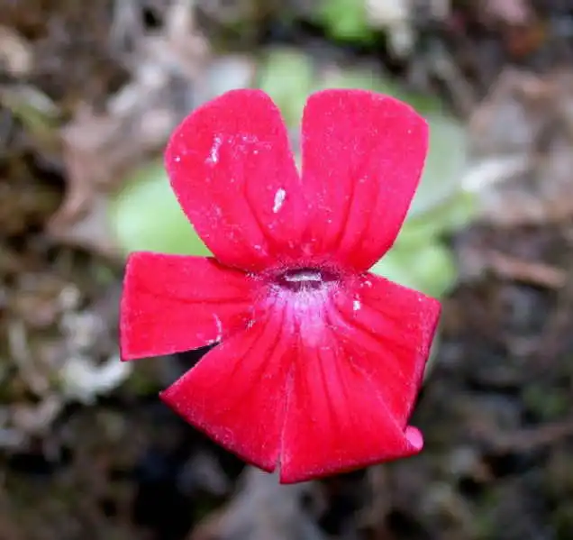 Flower of P. laueana covered with small wounds on the corolla lobes caused by some big & violent pollinator? Photo : Ed Read |