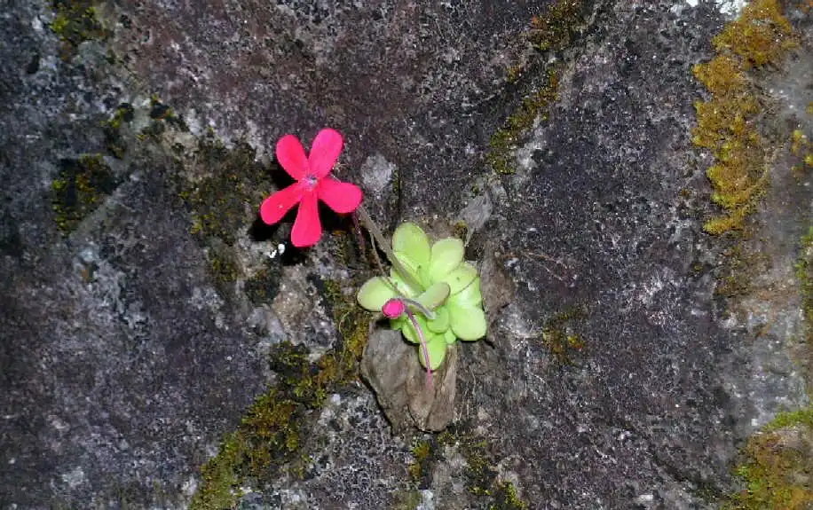Pinguicula laueana in its habitat growing on a crevace. Photo : F. Rivadavia |
