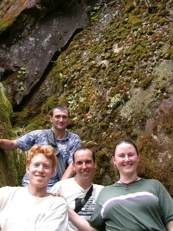 Helen, Ed, Joe and Fernando posing at the bottom of the habitat of P. laueana. But who really did the picture ? Photo : F.rivadavia |