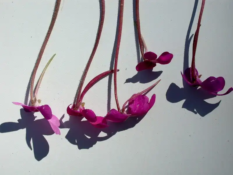 Collection of flowers of a Pinguicula moranensis from Sierra Mixe. Note the variations of the spurs. Photo : Ed Read |