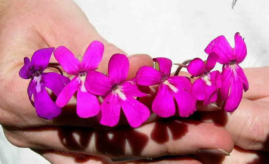 Collection of flowers of a Pinguicula moranensis from Sierra Mixe. Note the variations of the flowers (as usual !). Photo : F. Rivadavia |