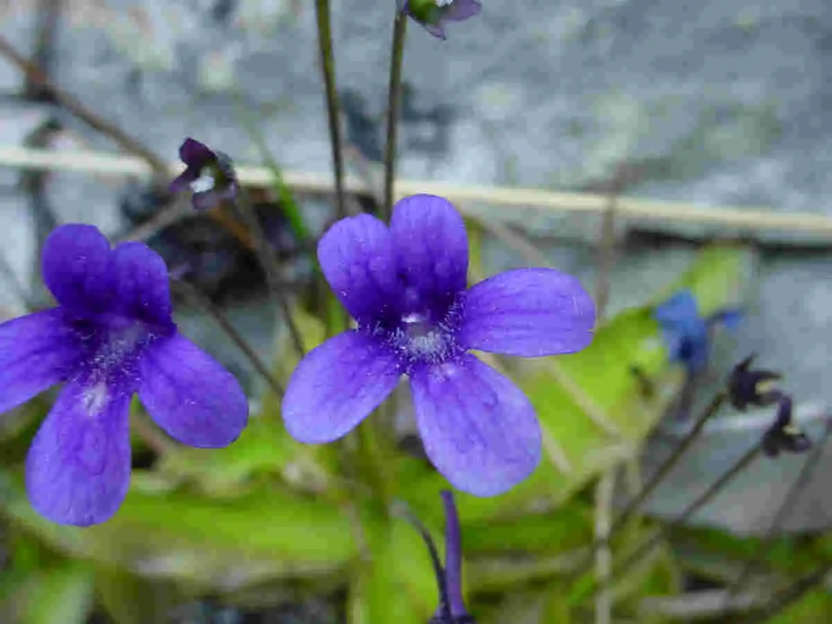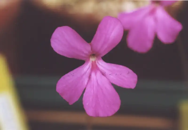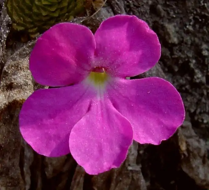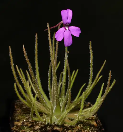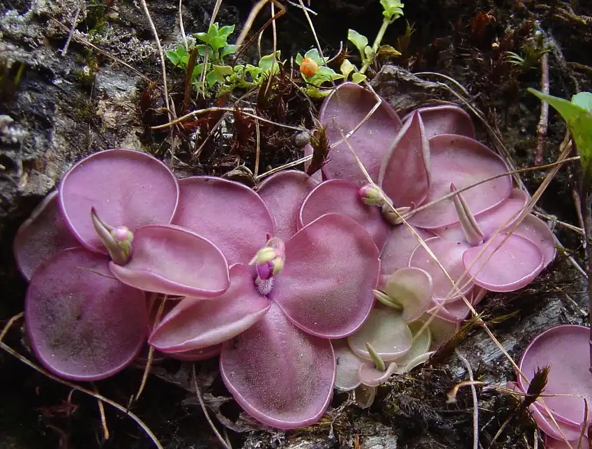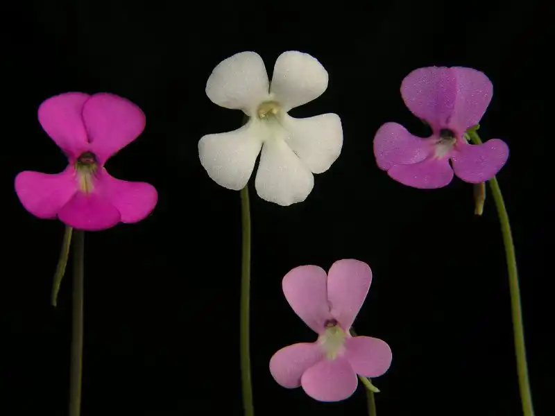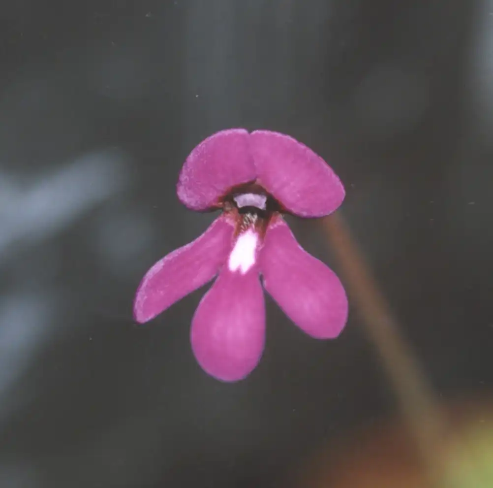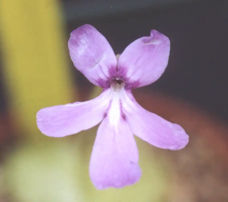 Thus, in Pinguicula ‘Mitla’, the purplish to carmine pink (corolla) lobes are so narrow as to give a spidery appearance. They are rather less so in Pinguicul...